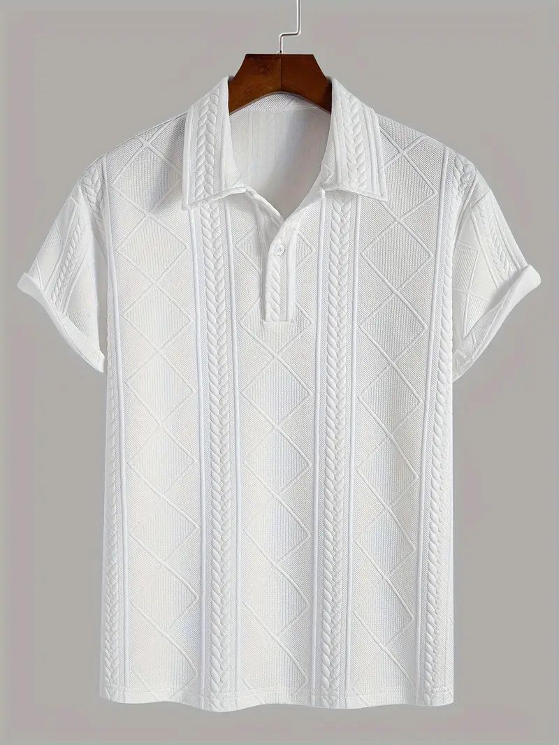 Step up your style game with the Textured Cable & Diamond Knit Polo Shirt. Combining a classic silhouette with a rich, tactile texture, this white polo is a versatile addition to any discerning wardrobe.